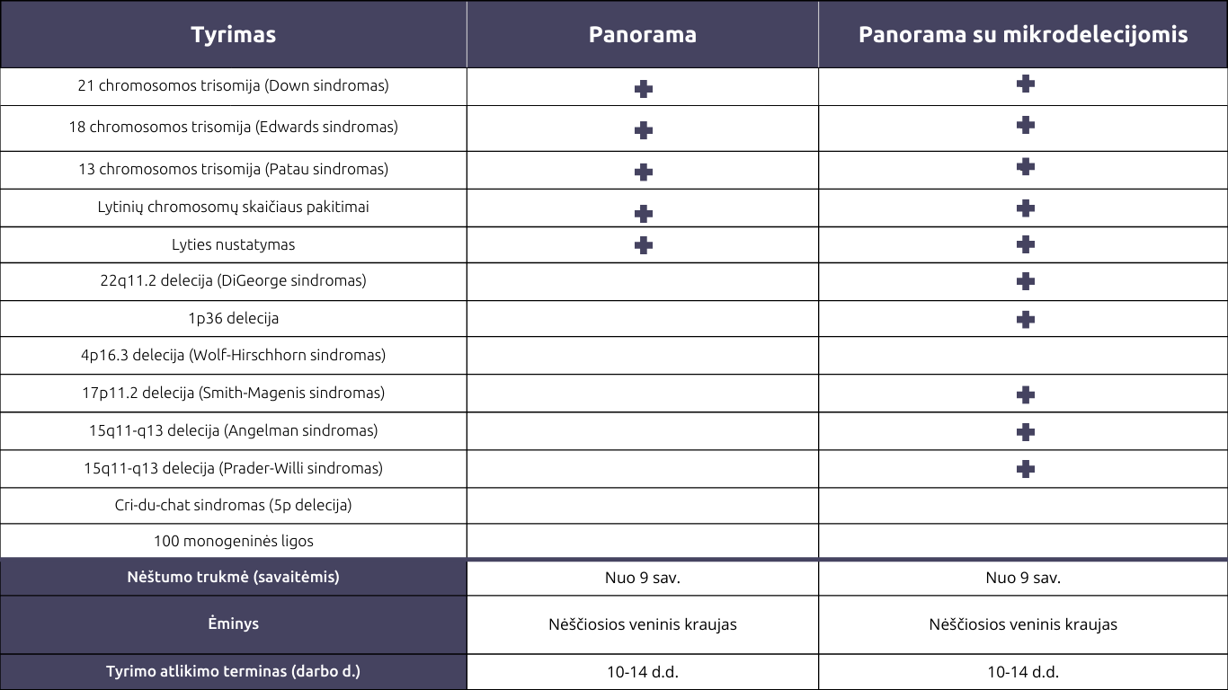 tai pažangus neinvazinis prenatalinis testas (NIPT), skirtas nustatyti dažniausias genetines ligas – Dauno, Edvardso ir Patau sindromus, lytinių chromosų skaičiaus pakitimus ir mikrodelecijas. Tyrimas atliekamas nuo 9 nėštumo savaitės iš nėščiosios kraujo mėginio, todėl yra visiškai saugus.